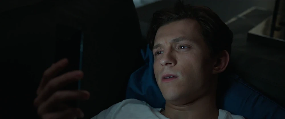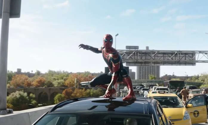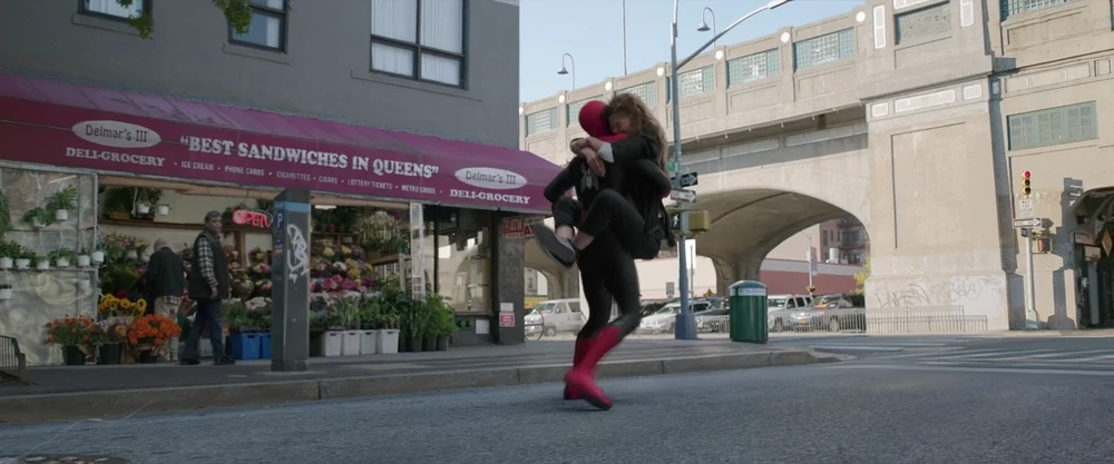 Parker grabbed ahold of Jones and swung away through Times Square passing jumbotrons revealing his identity and labeling him as "Public Enemy #1", as well as billboards referencing Rogers: The Musical. During their escape, Peter asks if it's possible to lay-low at Jones' house. Jones tells him no, saying her father definitely dislikes Parker now that he knows he's Spider-Man. Parker improvised and landed atop the Queensboro Bridge. On the bridge, Parker received a face-time video call from Ned Leeds, who was anxious over the reveal.