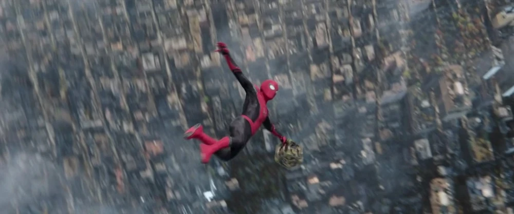 Parker visited his aunt's gravesite at a local cemetery, grieving her death. Happy suddenly joined him at the funeral, meeting Peter. Happy Hogan, who asked Parker how he knew May. Parker replied that he knew her through Spider-Man, in which Hogan replied the same. Hogan then told Parker that he recalled losing his friend Tony Stark. Parker moved into an apartment and began to settle in, but not before being told by his landlord that rent was due on January, 2025, and he shouldn't be late. Parker put these things in his apartment: LEGO minifigure of Emperor Palpatine from the Death Star set Leeds and Parker built together, and the coffee cup Jones gave Peter at the café. Parker borrowed a GED textbook to complete his lost secondary academics, and bought a sewing machine to create a new Spider-Man Suit by hand, taking inspiration in the visual design from the suits of his counterparts. One night, having tapped his phone into the Police Radio Frequency to keep himself notified of ongoing crime, Parker quickly exited his apartment through the front window and swung through Rockefeller Center, passing the Christmas tree and ice rink, now being an independent Spider-Man.