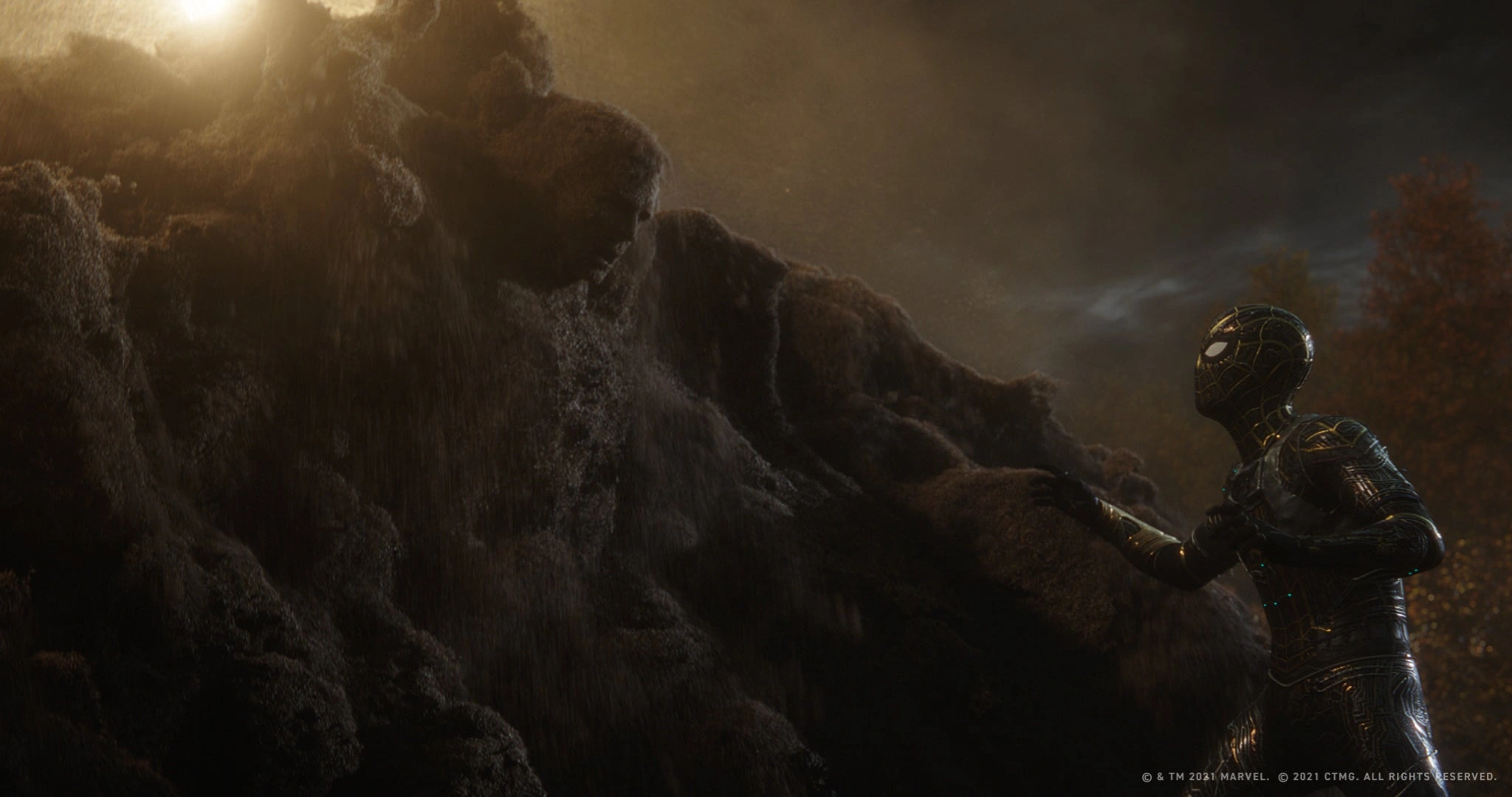 With Peter was preparing to capture more villains, he tried to clean his dirty suit but failed to do so despite his best efforts, so he turned the suit inside out for the time being as May told him that she would clean his suit later on. Ned managed to trace an activity at a military research facility outside of New York City, whom he thought was the Green Goblin. Doctor Octopus explained to Parker that it was impossible that Norman Osborn was alive as in his universe, since Norman died after being impaled by his own glider during a fight with Spider-Man, saying that either they saw someone else or he was to fight a living ghost who was possessing Norman's dead body. Then, Spider-Man swung through the woods where he encountered Electro, who was drawing powers from electrical lines since he can absorb pure energy. Spider-Man attempted transport Electro to the New York Sanctum, as the web went through his body.