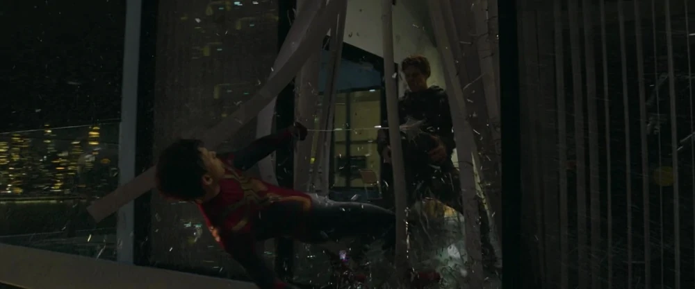 After finding out the representative's details, Parker rushed to the Alexander Hamilton Bridge while wearing his Iron Spider Armor to identify the MIT representative using facial recognition. After seeing news helicopters, he waved at them. He then learned much to his shock that E.D.I.T.H. had been shut down, so he had to find the representative manually.