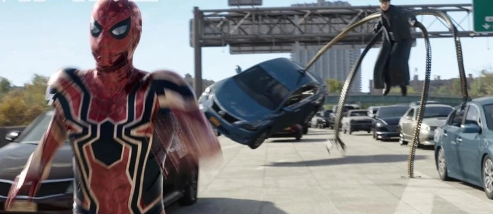 Leaving no choice since thinking that Parker did not knew the machine just for a joke to Octavius, Doctor Octopus combated Spider-Man by using the tentacles to throw cars at him, forcing Spider-Man to either evade them or save civilians who were still inside the car.