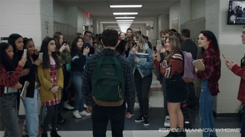 After having his criminal charges cleared, Parker headed into Midtown School of Science and Technology for his first day of senior year, after his summer break, where he, Michelle Jones, Ned Leeds, and Flash Thompson were surrounded by pro-Mysterio supporters, calling Parker and his friends horrible and demeaning names, terming Parker as the "Devil in Disguise" and people behaving creepily towards Jones, much to Parker's frustration. However, Parker was guided by the NYPD officers on crowd control, who led him inside.